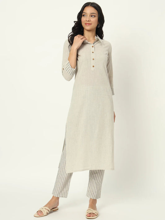 61% OffDusty Storm Linen Kurti Set