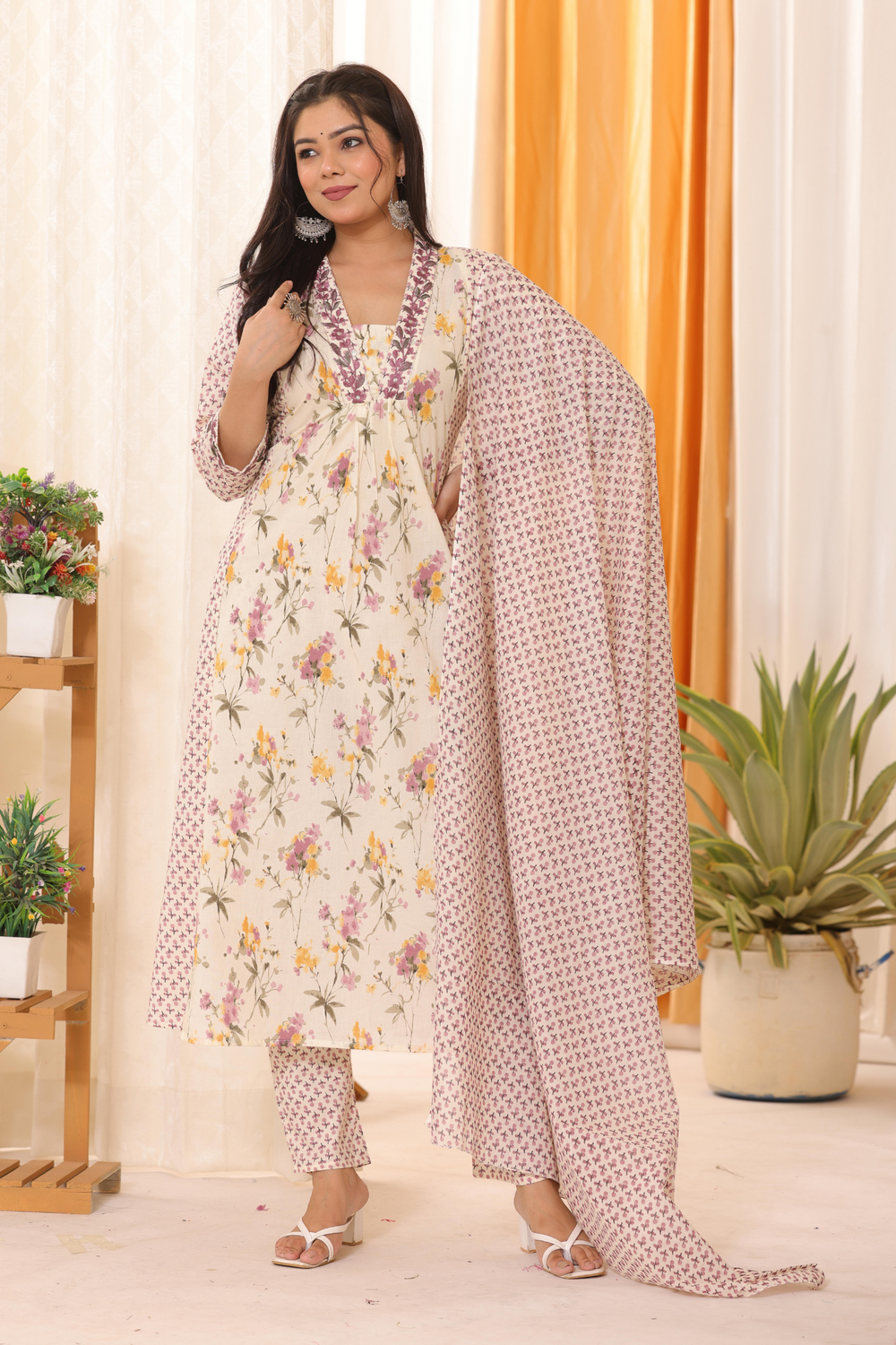 Dupatta: Matching printed dupatta for a complete ethnic look